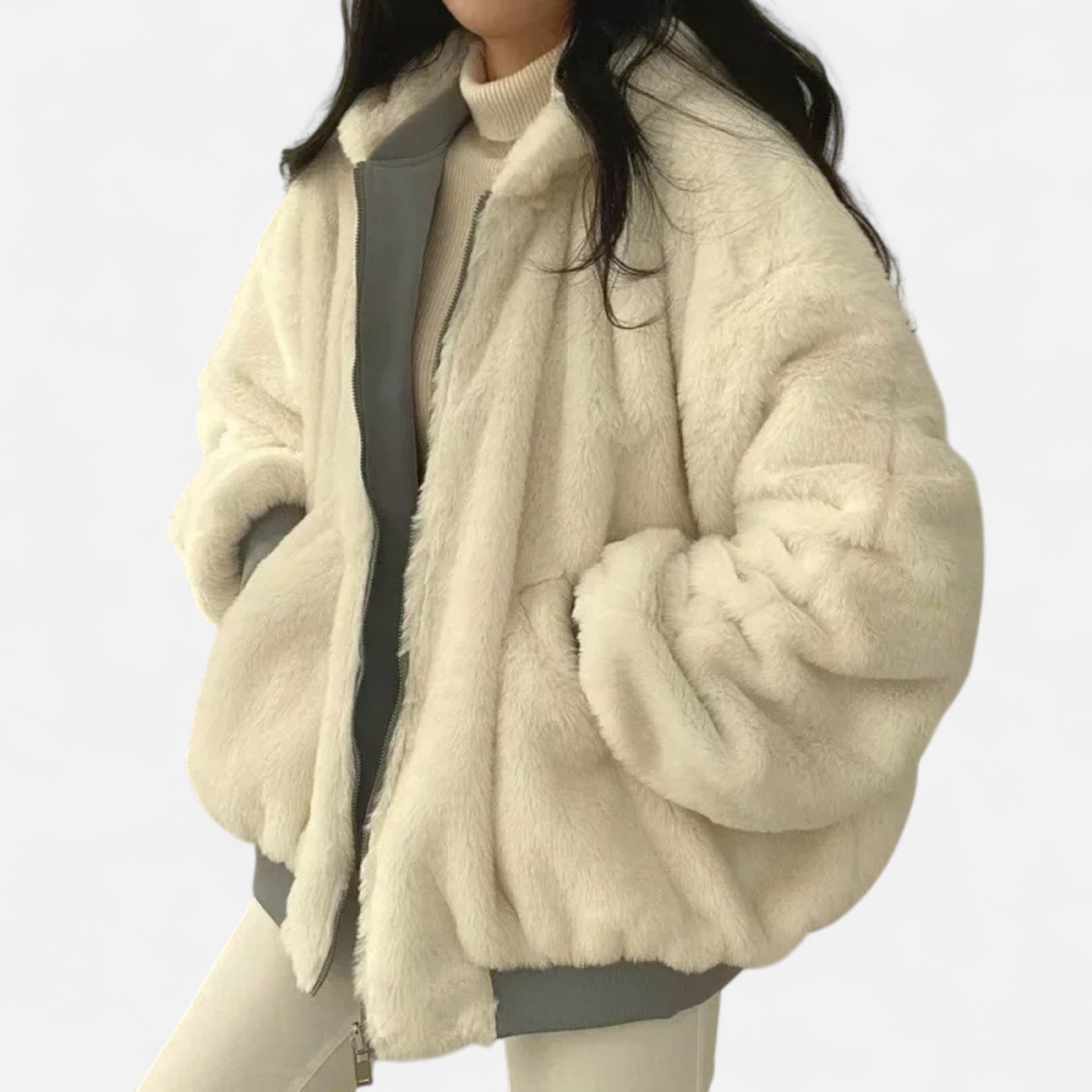 Made from premium insulating fabric, the coat provides lasting warmth while remaining lightweight and comfortable. The oversized cut drapes gracefully, allowing effortless layering without losing its polished structure.